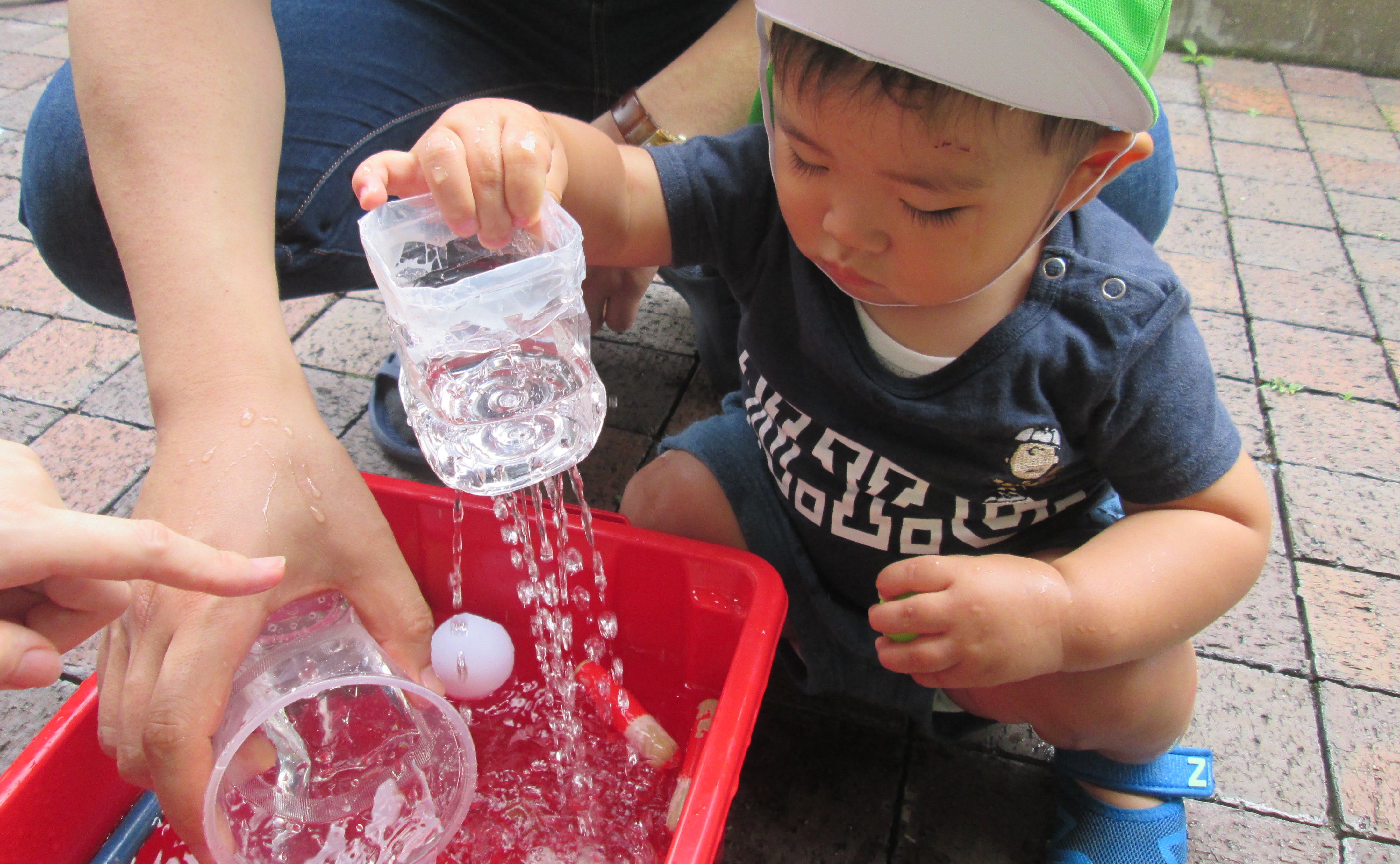 初めての水遊びでちょっぴりドキドキしたお友達も