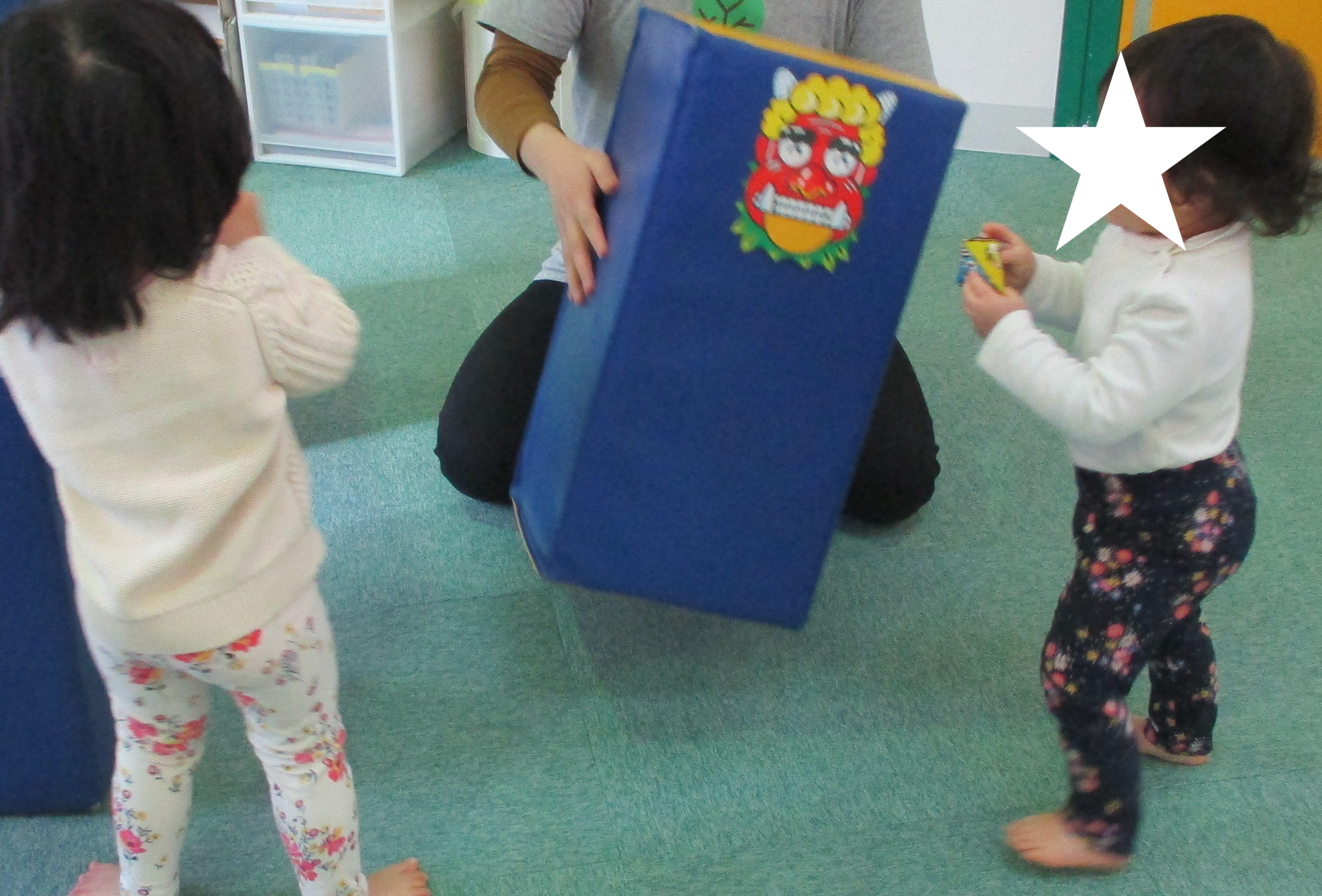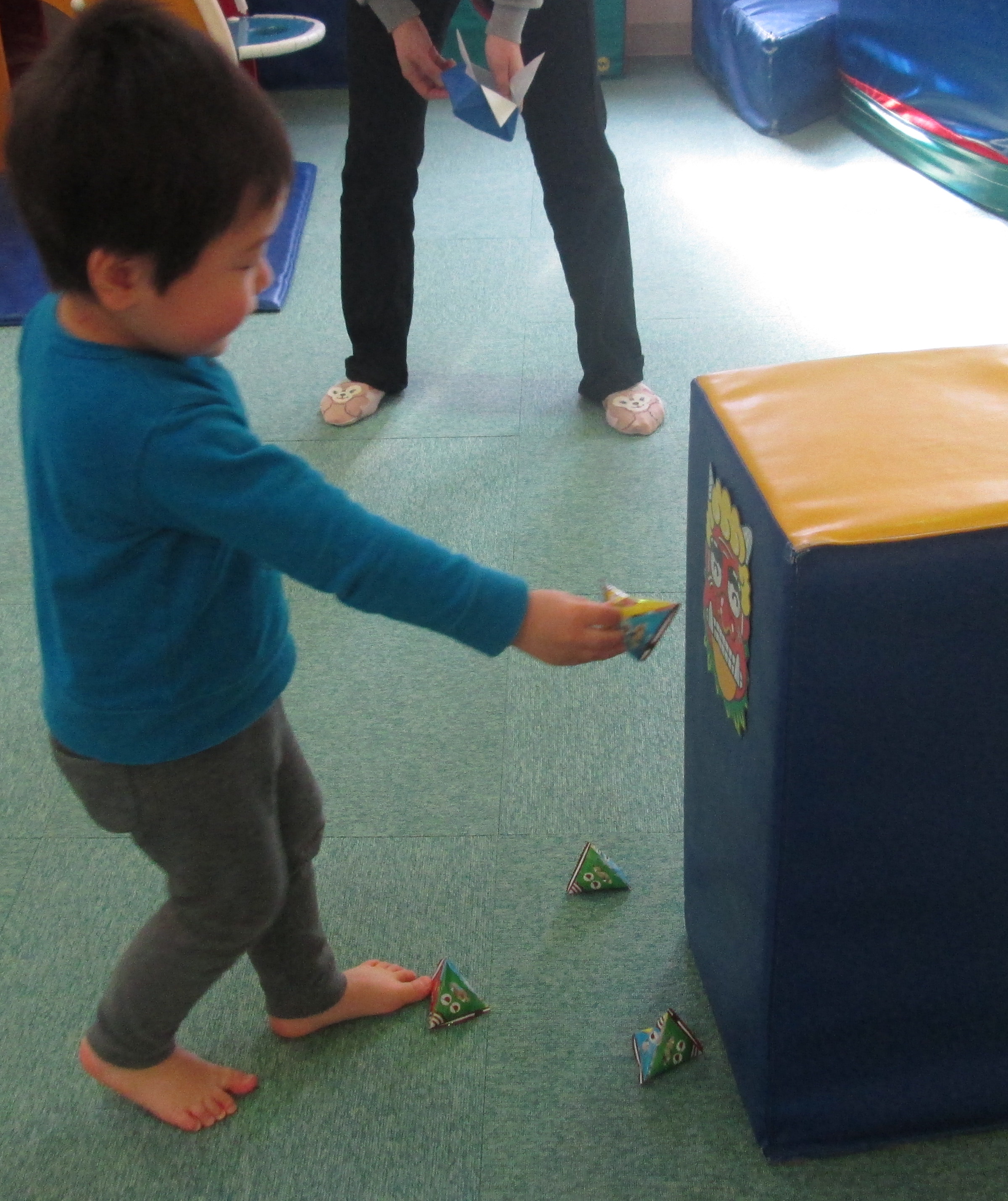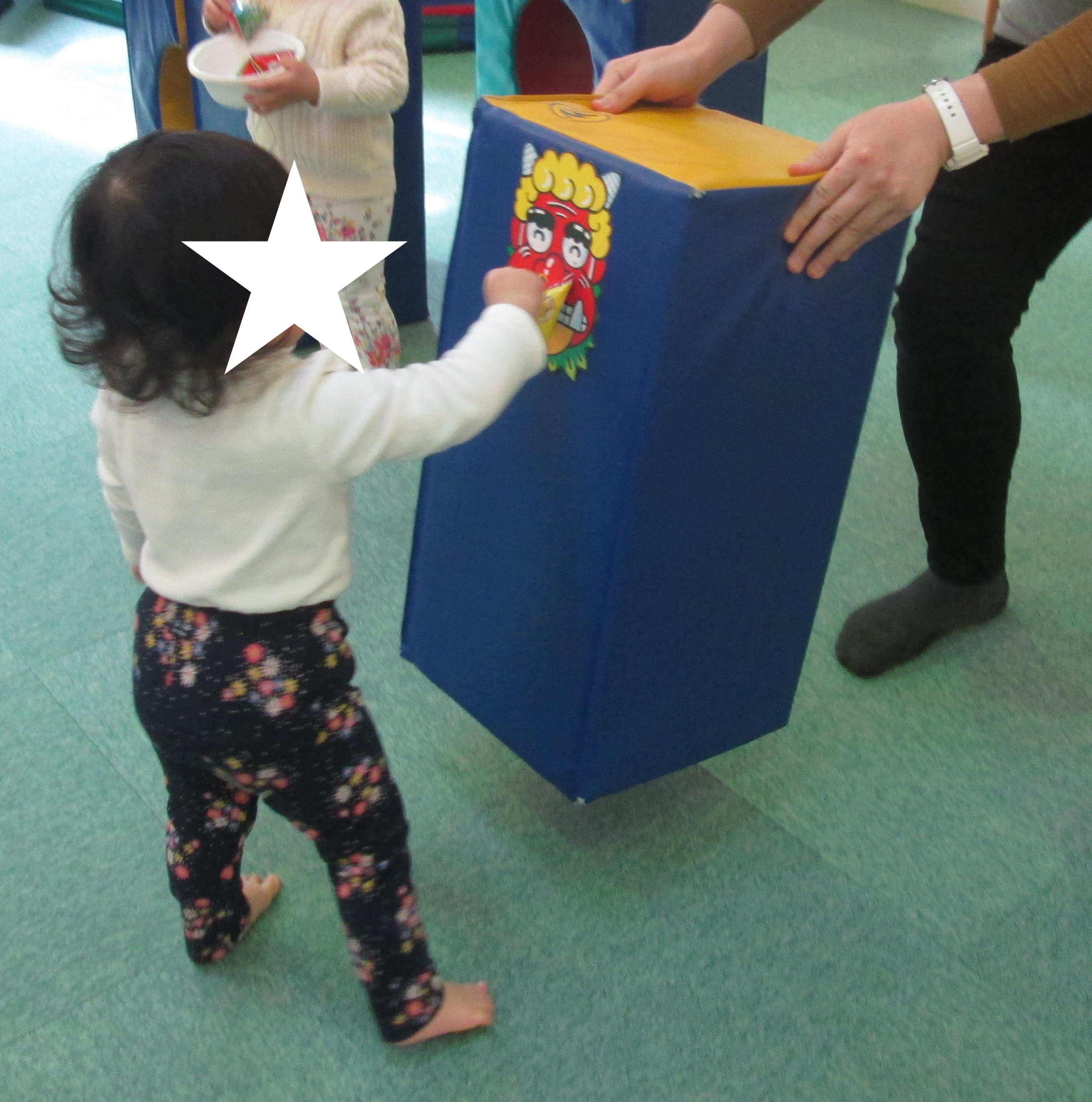 『鬼は外!」と大きな声で言いながらソフトブロックに